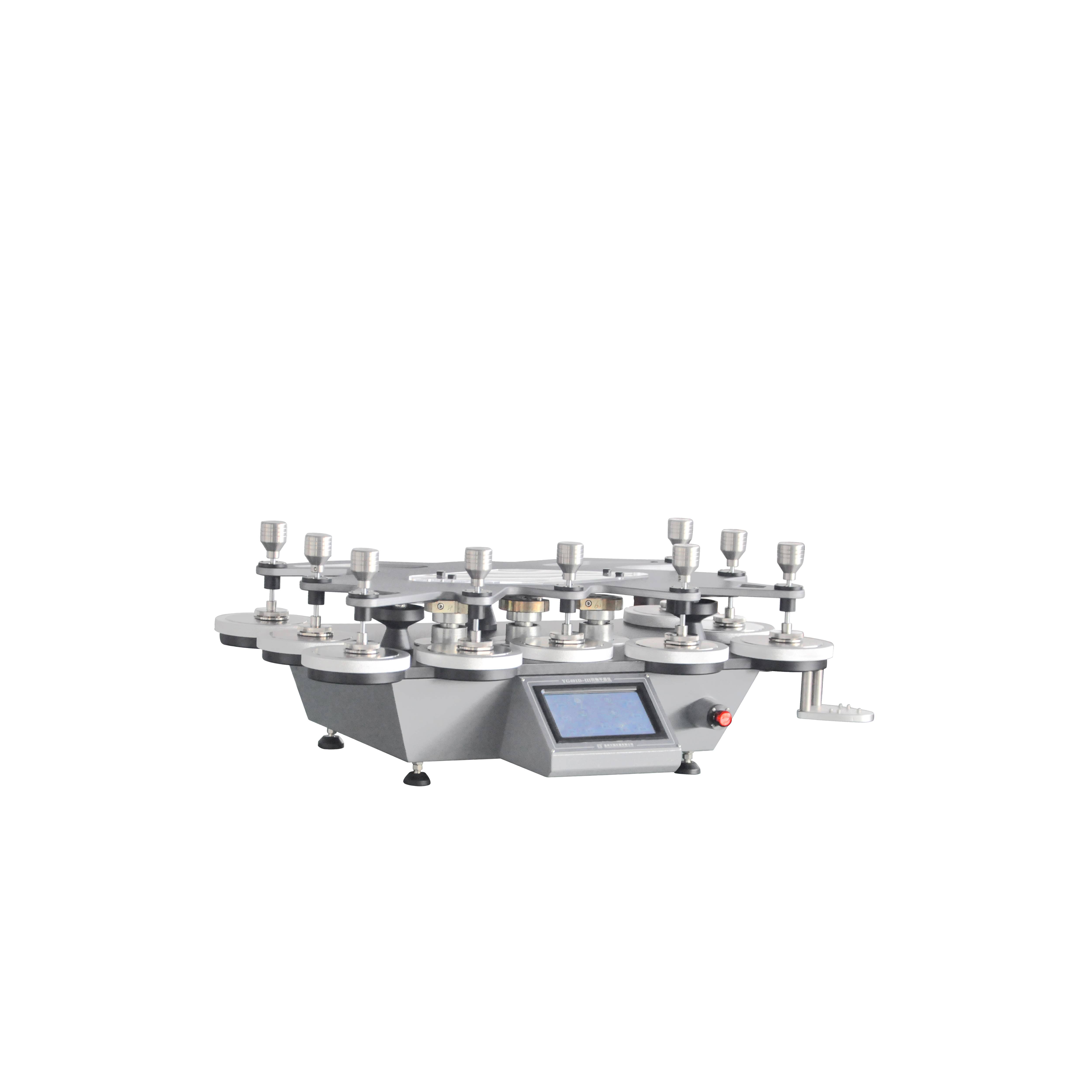 72 YG401F織物平磨儀(九工位) GB/T4802.2-2008,GB/T13775,GB/T21196.1,GB/T21196.2,GB/T21196.3,GB/T21196.4;FZ/T20020;ISO12945.2、12947;ASTM D 4966、4970、IWS TM112,可以增加球盤法測試功能(選配)等標(biāo)準(zhǔn)。